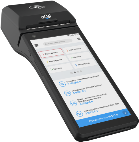 aQsi 5 умеет работать с маркированными товарами, используя встроенный сканер: