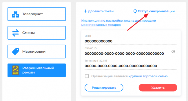 5. Проверить статус синхронизации настроек разрешительного режима, нажать на “Статус синхронизации” .