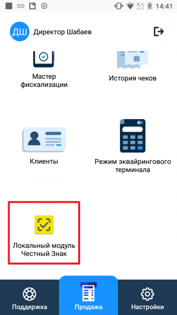7. 1 На кассе откройте приложение «Локальный модуль Честный знак».